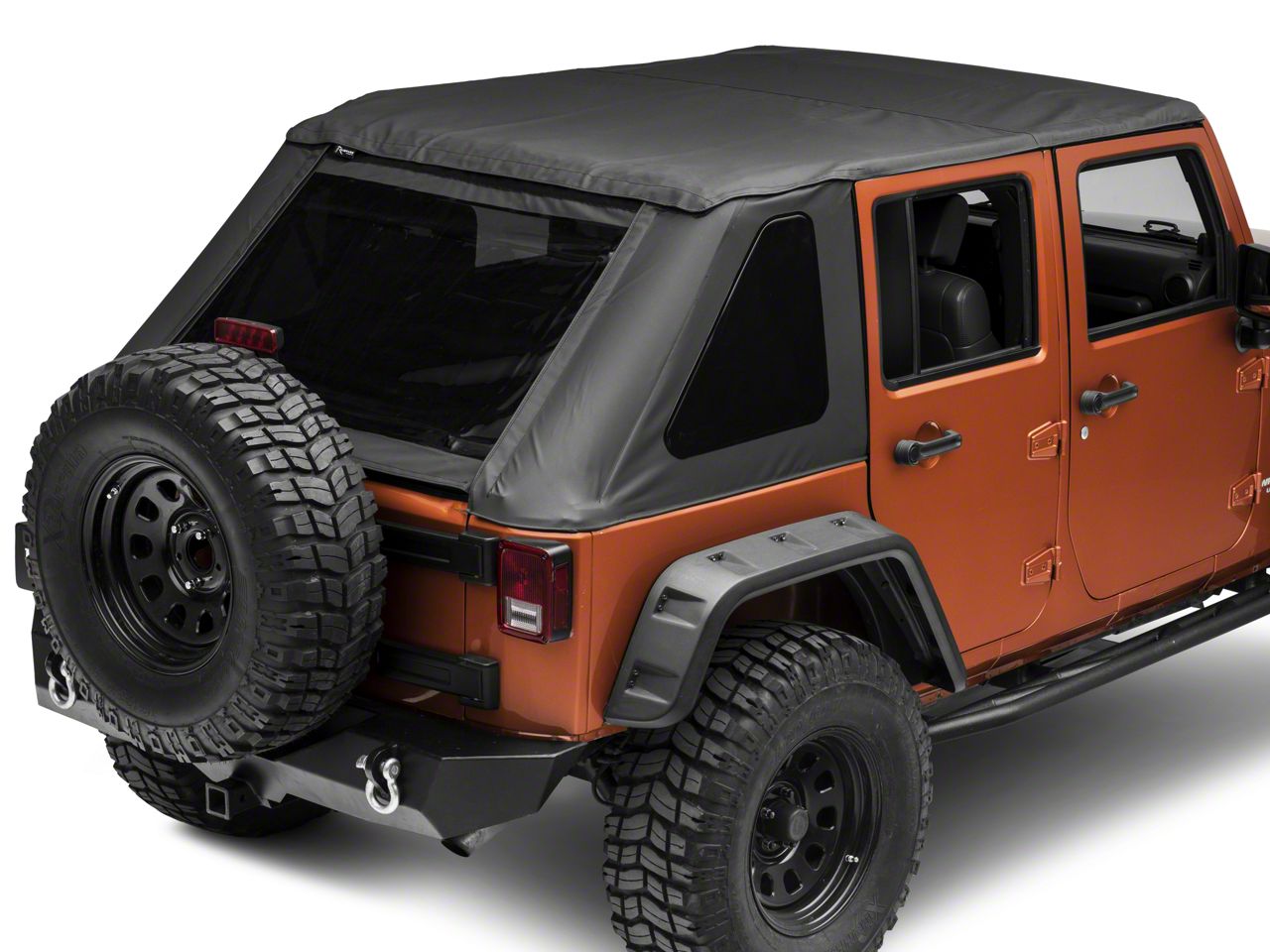 A stock jeep wrangler soft top is a framed top meaning there s a sub structure supporting the fabric to reduce road noise.